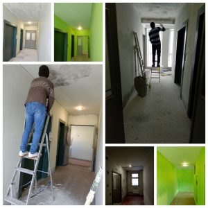 — Продолжается косметический ремонт подъезда: частичная расчистка штукатурно – окрасочного слоя стен, потолков, оштукатуривание стен, потолков, окраска потолков водоэмульсионной краской, окраска стен и потолков (ул. Игната Титова, 7, п.1, эт. 8, 7, 6, 5);