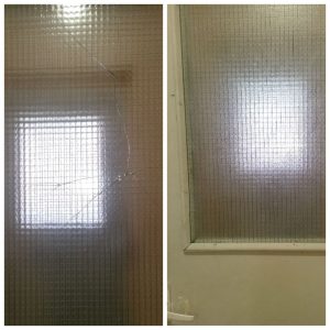 — Выполнена замена битого армированного стекла на новое (Подмосковный б-р, 11, п.4, эт.4);
