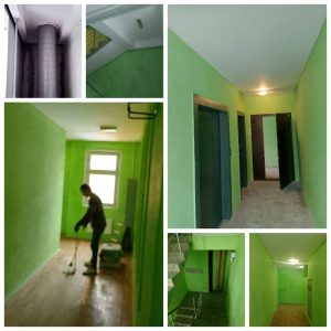 — Продолжается косметический ремонт подъезда: частичная расчистка штукатурно – окрасочного слоя стен, потолков, оштукатуривание стен, потолков, окраска потолков водоэмульсионной краской, окраска стен и потолков (ул. Игната Титова, 7, п.1, эт. 4,3,2);