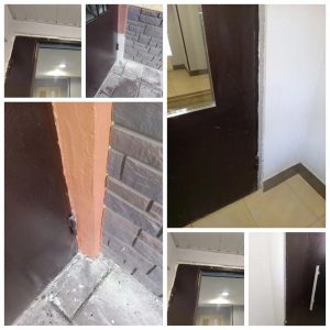 — Выполнены работы по восстановлению штукатурного окрасочного слоя дверных откосов и стены на первом этаже (Павшинский б-р, 7, п.3);
