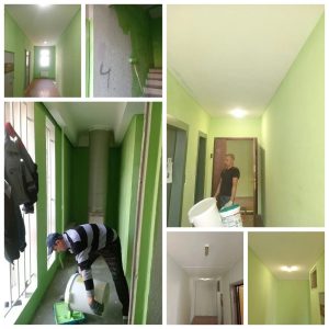 — Продолжается косметический ремонт подъезда: частичная расчистка штукатурно – окрасочного слоя стен, потолков, оштукатуривание стен, потолков, окраска стен и потолков (ул. Игната Титова, 7, п.2, эт. 6, 5, 4);