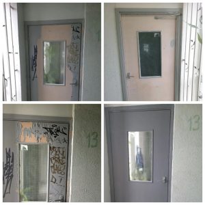 — Выполнены ремонты входной двери (ул. Спасская, 4, п.7), дверной ручки на входной двери (ул. Егорова, 5, п.2) и петель на двери запасного выхода (ул. Спасская, 4, п.6);